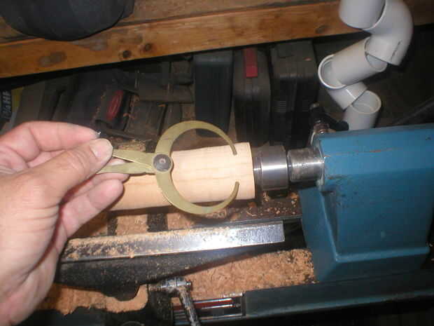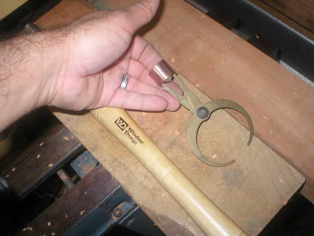 Para una ronda que necesita para empezar pensando en la virola, el casquillo es una funda de metal para ir en el extremo de la manija donde el cincel es a evitar que se resquebraje la madera. Estoy usando cobre porque lo tuve y es fácil de trabajar y se ve realmente bien pulimentado. Así que en este momento utilizar sus pinzas para medir el interior diámetro de la virola, utilizará esta medida al tamaño de la espiga en el extremo del espacio en blanco de la virola ir a. Una vez que tengas tu espiga de tamaño un poco sobre tap el casquillo en el espacio en blanco usando un mazo o un bloque de madera. Una vez que la férula está en apretado Monte el bloque en el torno para terminar su manija.