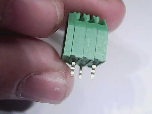 Sus inconvenientes son la profundidad extra que necesitan para el mecanismo de resorte y las ubicaciones de los pin escalonado. Debes tener cuidado de este hecho al crear tus huellas. El fabricante pone siempre la clavija de la derecha (cuando se mira en la parte delantera) más cercano al frente. Ver las fotos de las 2ª y 3ª para más detalles. También debe tener en cuenta que el conector tiene una pequeña parte de la izquierda que les impide ser apilados como terminales de tornillo. Todavía puede apilarlas, pero necesita planificar con antelación su PCB. La 1ª y 3ª foto muestra dos terminales de 4 pines de lado a lado. Puedes ver el espacio extra requerido.