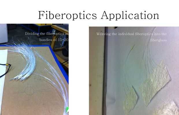 Resina de poliéster, fibra de vidrio, acero, fibra óptica, LED
