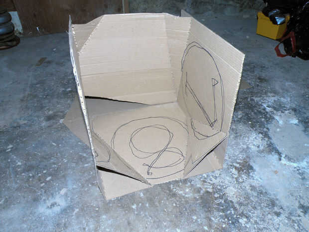Para sujetar la silla juntos, se colocan aletas triangulares que plazas colindantes tendrán aletas superpuestas, que pueden ser a través de empernado para mantenerlo. Para el modelo, use clavitos o stapels. Este esquema plegable es una de muchas posibilidades usando esta geometría general y método de trabajo, así que desea explorar otros diseños.