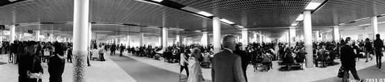 La fotografía panorámica es propuesto para mostrar el panorama de una escena y el medio ambiente y el panorama se utiliza para explicar la relación entre medio ambiente y los principales acontecimientos y el entorno. Panoramic tiene claro centro de contenido. Como se muestra en la tabla anterior, hay mucha gente en el pasillo, que muestra el caos ambiental de la escena.