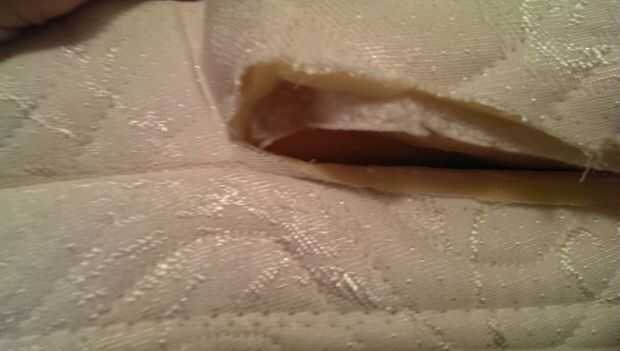 Inspeccione la tapa de la almohadilla y hacer una prueba de corte por encima de tantas costuras como sea posible para investigar su colchón. Mi Beautyrest fue exactamente como esperaba, con una capa de material separando las bobinas de la cubierta de espuma.