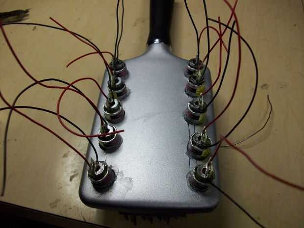 A continuación fue alineando los lasers en los agujeros. Utiliza sellador de silicona para pegar todo, porque cura bastante rápido y es fácilmente desmontable en el caso de prototipos como este. A continuación hacía todo trabajar!