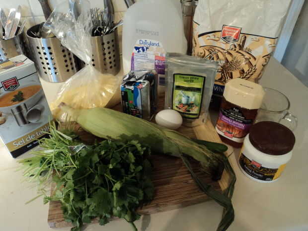 - 1 mazorca de maíz, desconchados y granos de corte y cocido al vapor por 3 minutos