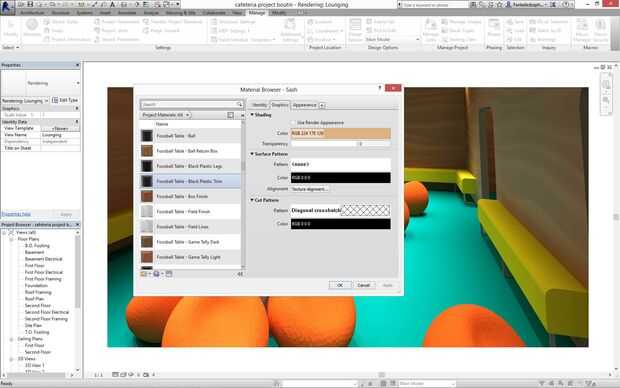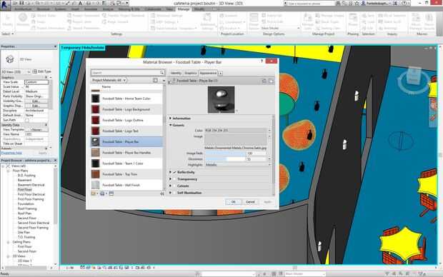 Ahora algunas cosas no dejan cambiar los materiales de esta manera. Cuando vayas a editar allí no son opciones de material. El trabajo alrededor de esto es ir a la pestaña manage en la cinta y luego a los materiales. A continuación, usted tiene que encontrar el material que hace referencia el componente. a veces esto es fácil, por ejemplo todos los materiales de la mesa de fútbol están etiquetados "futbolín..." esto los hace fáciles de encontrar y cambiar.