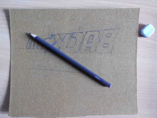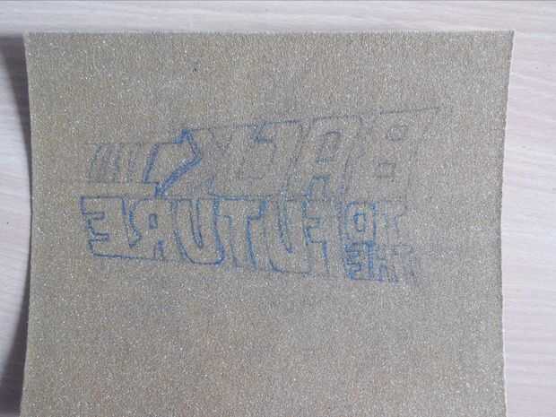 Tienes que dibujar una imagen del logotipo del papel de lija con la imagen espejada. Puede utilizar un lápiz para hacer esto o puede colocar un papel debajo de la imagen espejo y trazar sobre el papel de lija. Usted obtendrá una perfecta réplica si utilizas un papel carbón.