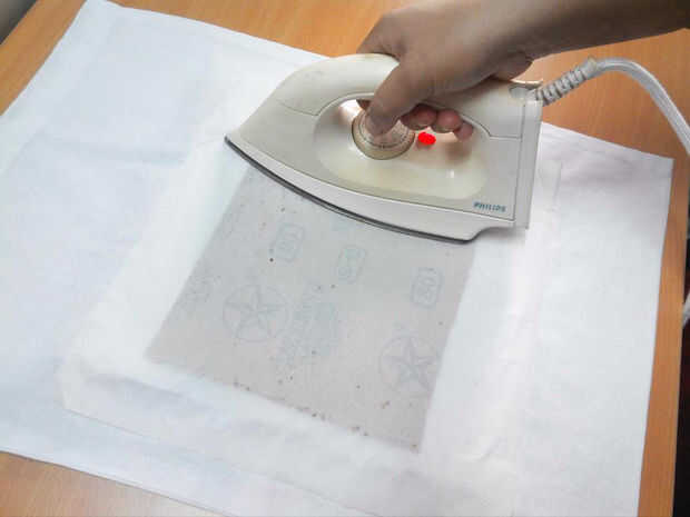 Es hora para tomar la plancha y empezar a planchar en la servilleta de papel. Asegúrese de que el papel de lija debajo no se mueve.