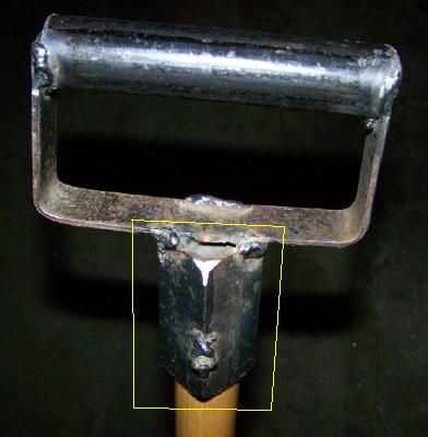 Las esquinas del hierro de ángulo a la porción plana de la manija de soldadura. No hay mucho con el soldador, pero esto agrega mucha fuerza y estabilidad a la empuñadura.