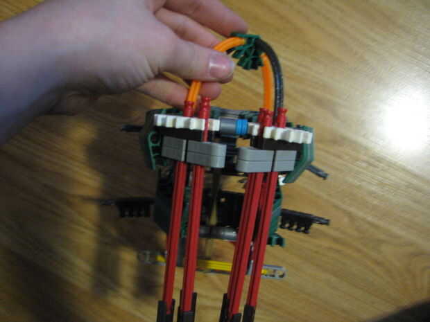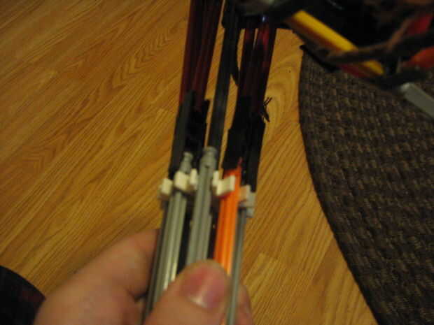 this is pretty easy to. La cuarta foto muestra donde en el palo se conecta en el palo por una barra roja y gris.