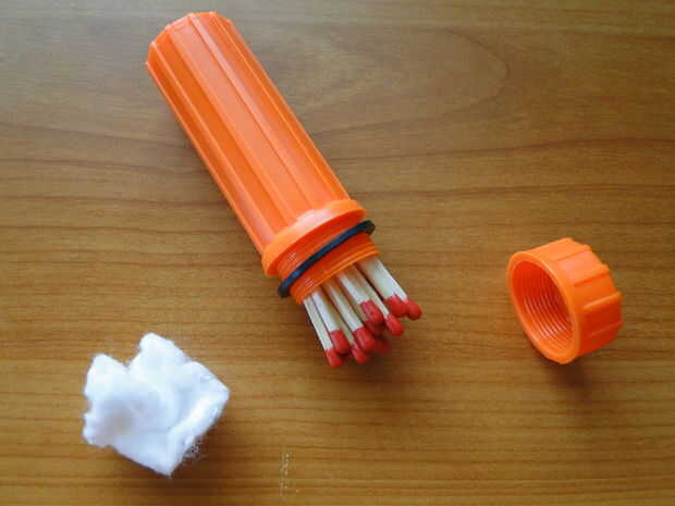 Fuego es muy importante en la supervivencia. Y su herramienta de toma de fuego tiene que permanecer seco por lo que opté por un sostenedor mach prueba de agua. Y si su seco I "ll uso los fósforos en el kit de supervivencia porque no quiero usar la prueba del agua que. Yesca es también necesaria para comenzar un fuego y hace mucho más fácil.