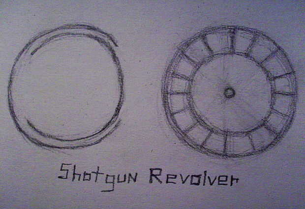 19F12: doble cañón revólver: este dibujo muestra la ubicación de las barricas más claramente. -por Oblivitus