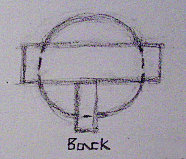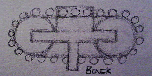 18F11: escopeta revólver: el dibujo a la derecha representa una cadena de CS3 barriles (escopeta compacta 3) establecer en sus lados con varillas flexibles en el interior del círculo y fuera de ella los mantiene juntos. El dibujo de la izquierda muestra cómo deben fijarse las varillas flexibles en un patrón de entrecruzados para proporcionar fuerza al revólver. -por Oblivitus