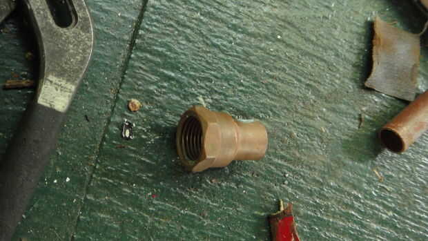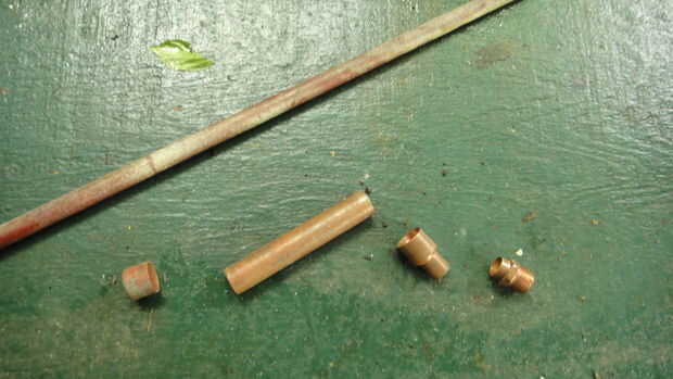 Piezas de cobre: 3/4 "x 4", 1/2 "x 3", rosca hembra 1/2 acoplamiento 1/2" a 3/4" adaptador y tapa de 3/4".