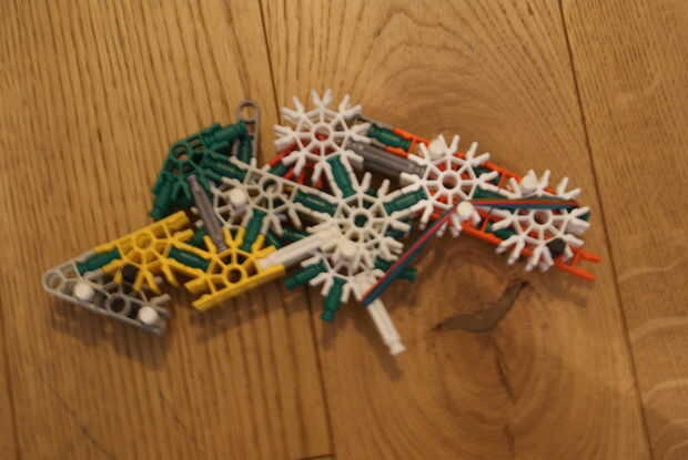 este es mi MAR-4 (Rifle de asalto Masterdude versión 4). A petición de otros miembros de la comunidad de K'nexing, he hecho con un nuevo mecanismo de disparo (tipo percutor/baqueta). Dispara mi munición estándar, sin embargo si haces solo tiro entonc