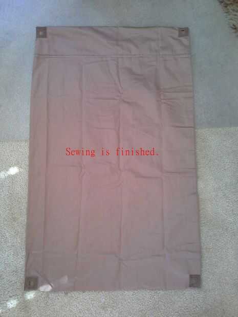 El objetivo es que todo el material de refuerzo visible en un lado de la mochila. La mochila terminada se verá como un rectángulo con un agujero en cada esquina.