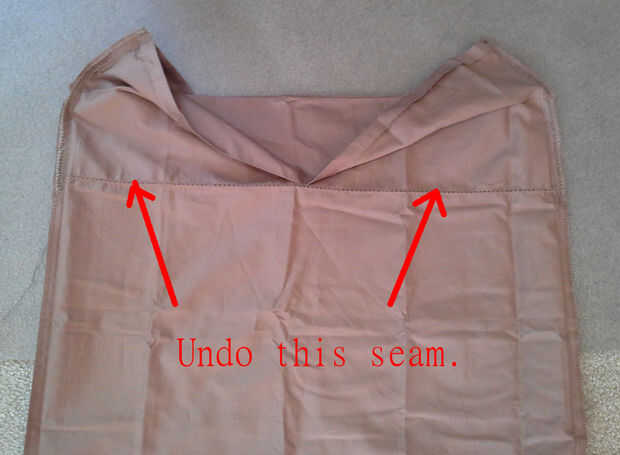 Existen maneras diferentes que puede construirse una funda de almohada. Si no puede abrir la costura superior completamente debido a una costura corriendo al lado del funda de la almohada luego deberás abrir la costura en el lado y rehacer para que el caso funciona como usted lo necesita para. Los datos de cómo hacerlo se pueden encontrar en el tutorial de cinch sack