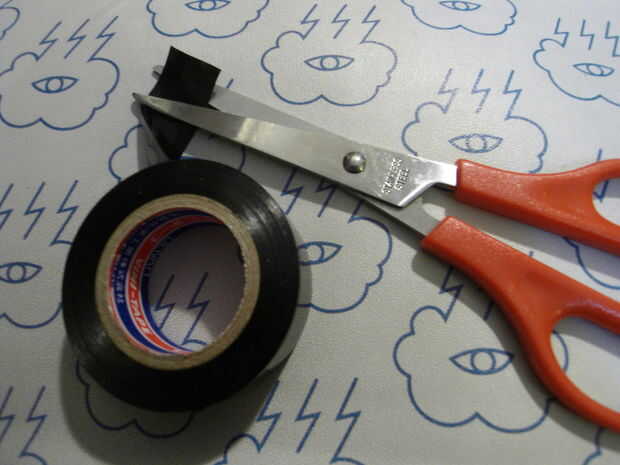 Corte la cinta negra en una forma de rectángulo y un triángulo