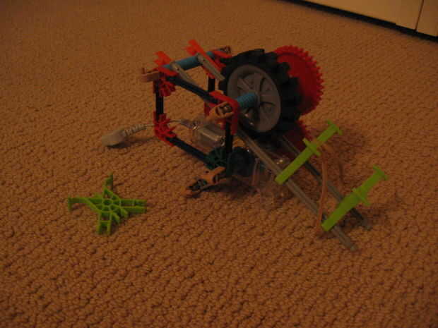 este rodillo fue construido desde el "Escorpión de acero" k'nex. Mi amigo de la calle tiene este juego para Navidad y me lo dio hace unos meses. Hace aproximadamente una semana abrimos el conjunto y trató de construirla. Algunas de las piezas fa