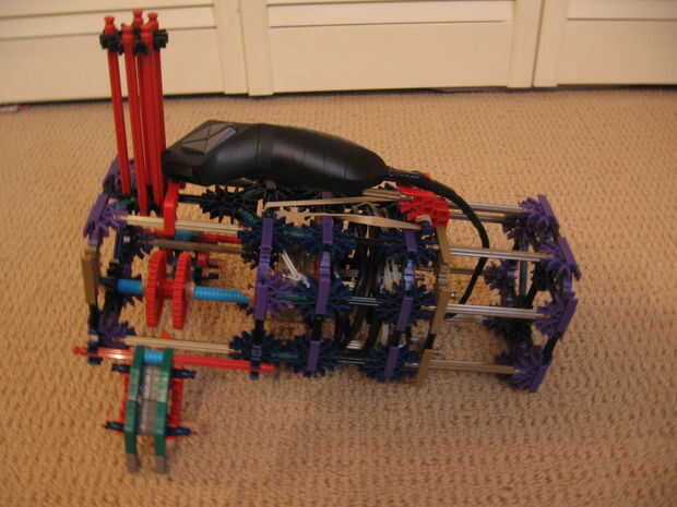 esto es una ametralladora de k'nex. Se dispara bastante lejos y es divertido de usar. Tiene una tasa firering 6,7 o 8 vueltas por segundo. Construirlo y probarlo, es una muy divertida pistola. Por cierto, yo no soy responsable de lo que se hacer con esta arma!