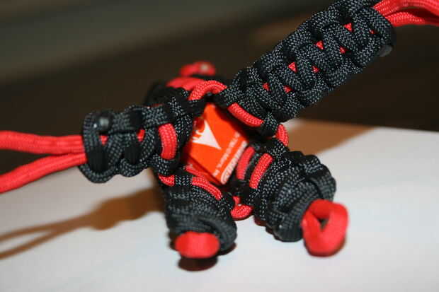 También puede poner algunos dulces en él para todas sus necesidades de dulce. Umm veamos que puede poner un recipiente pequeño allí. Oh sé que podría poner algunos paracord en su bolsa de paracord, idea perfecta! La lista sigue y sigue. OK deja volver al tema, los lazos pequeños en la parte superior se pueden utilizar para conectar la bolsa a una mochila a través de un clip de carbiner. Además de la bolsa puede tomarse aparte tener como 30 pies de paracord. Y su muy fácil de hacer. Así que si recibo muchos comentarios sobre esta mal mostrar cómo hacerlo!