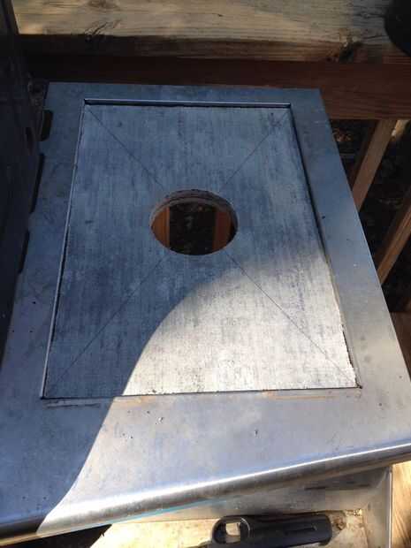 Sujeta las piezas cortadas junto con un pedazo de chatarra por debajo para evitar rasgar hacia fuera. Usando el centro del taladro "X" los orificios con el agujero del Sierra. Pintar la pieza superior de la placa de soporte corte con la pintura de alta temperatura. He utilizado el puede todo y limpie para arriba entre las capas de pintura como capas secadas.