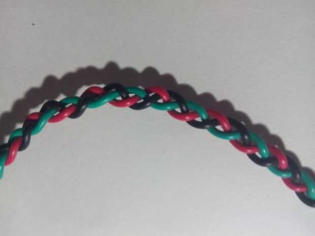 - A continuación, se superponen y retorcer el cable verde con cable negro que termina con el alambre negro en medio.
