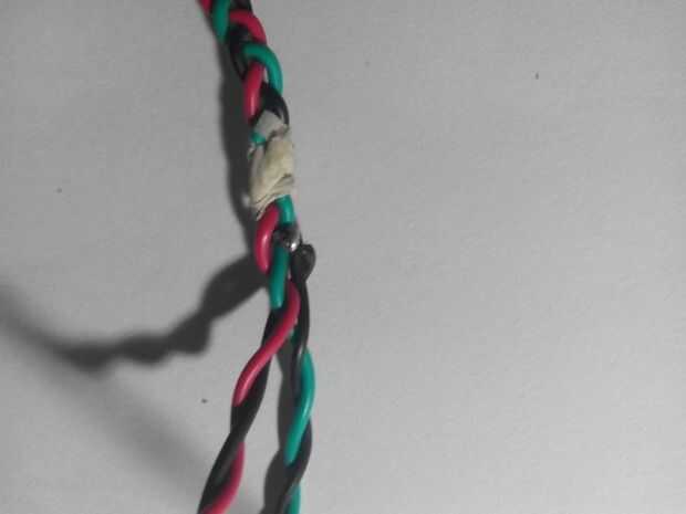 tan finalmente terminan con el alambre negro en medio. Ahora usted necesita cuatro cables en total para continuar, así que agregamos un nuevo cable negro 10 cm para dividir los 4 cables en dos para formar una forma de "Y".