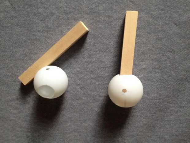 Colocar las pelotas de ping pong en las barras de apoyo a través del agujero grande. Al final de la barra de soporte debe ser cubierto en epoxy. Asegurar que los orificios de pivot en línea. ¿Cuándo pivotear los orificios no están en línea?