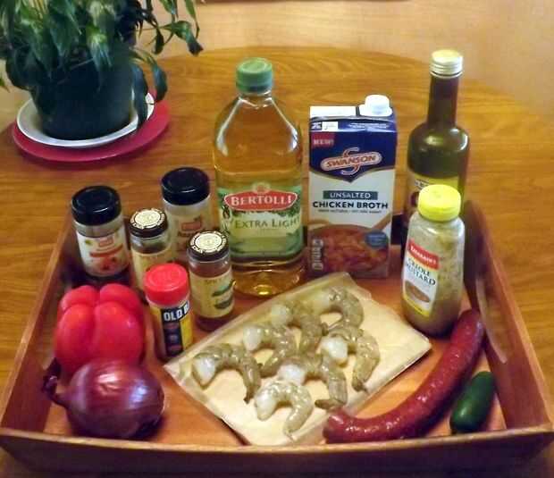 NUEZ ahumada salchicha y camarones en salsa de mostaza criolla con pimientos y cebollas (1 / 5 paso)