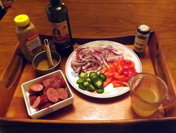 Salchicha Andouille ahumado ahumadero Pecan de Holmes a fuego lento en una salsa picante de mostaza criolla. OMG. Caliente, caliente, caliente y bueno, bueno, bueno!Paso 1: ingredientes10 onzas Holmes ahumadero Pecan ahumadas Andouille salchicha (nin