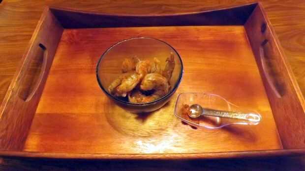 1. Coloque los camarones en un vaso o tazón de cerámica y sacudida con el condimento preparado. Cubrir y dejar de lado