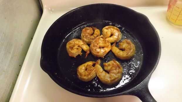 3. Agregar los camarones condimentados a la sartén y revolver-fríe hasta dorar, y opaco (sólo 2 o 3 minutos). Retirar y reservar junto con salchicha dorada.
