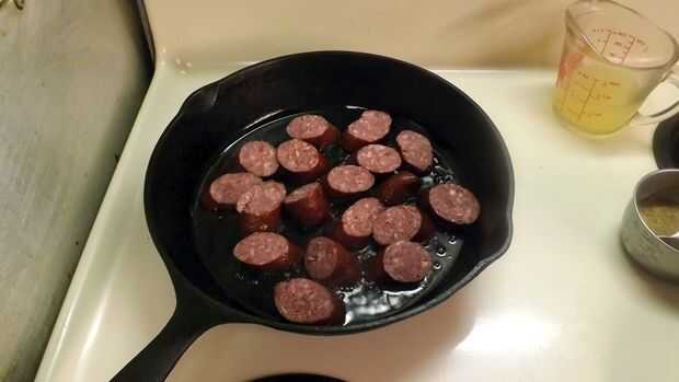 Salchicha Andouille ahumado ahumadero Pecan de Holmes a fuego lento en una salsa picante de mostaza criolla. OMG. Caliente, caliente, caliente y bueno, bueno, bueno!Paso 1: ingredientes10 onzas Holmes ahumadero Pecan ahumadas Andouille salchicha (nin