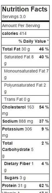Calcula la nutrición para esta receta a lo mejor de mi habilidad utilizando el analizador de receta de MyFitnessPal y basado en la nutrición en 3 porciones. Haga clic en la imagen para agrandar.