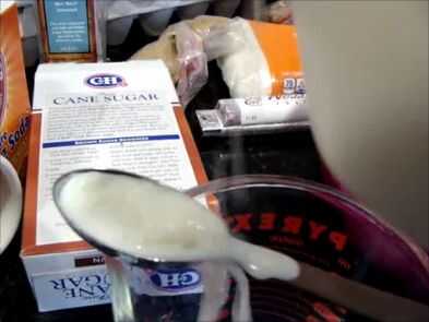 Agregar la leche y el extracto de vainilla y mezclar. He utilizado leche de 1%.