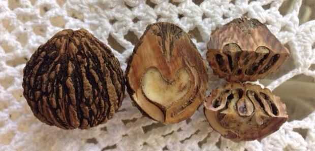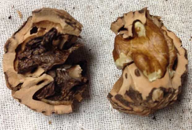 Tenga en cuenta la estructura de la cáscara interna de los frutos secos. En las dos primeras fotos, he utilizado una sierra de cinta para cortar las nueces con y contra la costura natural por lo que se aprecia la posición de las carnes de la tuerca. Las tuercas se cortan en cuartos a mostrar más detalle. Ahora puede entender lo que hace que estas tuercas maravillosas tan difíciles los bombardeos.