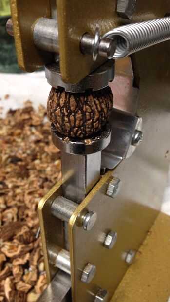 Una galleta de esa que nos podemos sumo es "Goody Getter' del abuelo creado en las montañas de Ozark. Estamos muy contentos con esta galleta, logrando una buena porción de nueces de tamaño agradable vale la pena el proceso. Personalmente, no sabemos el Sr. Bacon ni estamos pagamos por la mención de su galleta, pero funciona y vale la pena una mención. Su sitio proporciona videos de la galleta en la operación. Incluye con cada envío, un pequeño par de tijeras, para cortar las cáscaras que son resistentes a la galleta. Estas Tijeras realmente vienen en muy prácticos. Son las tijeras rojas poco que se muestra en la imagen de este paso.