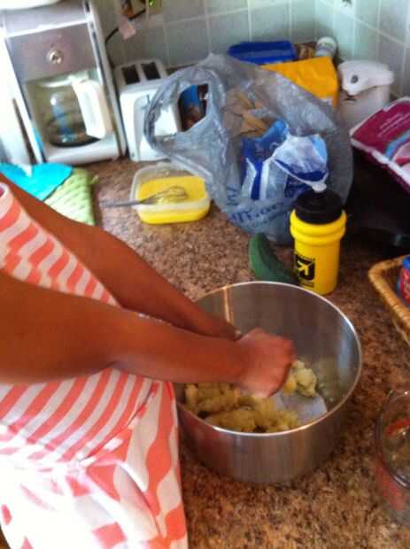 Con las manos limpias puede puré plátanos en un recipiente separado. Pensé que mi hijo de 5 años disfrutaría, por lo que ella fue mi ayudante!