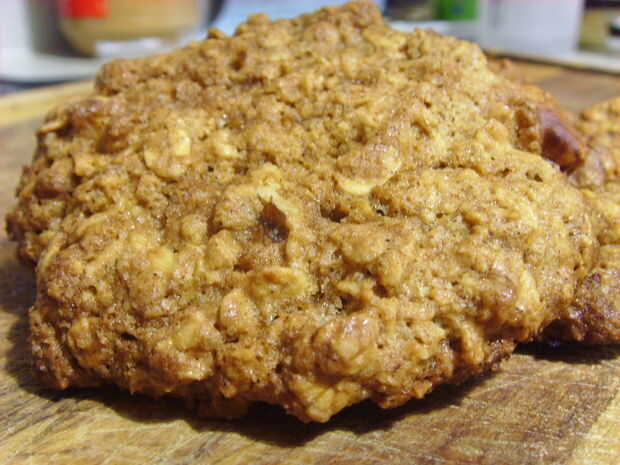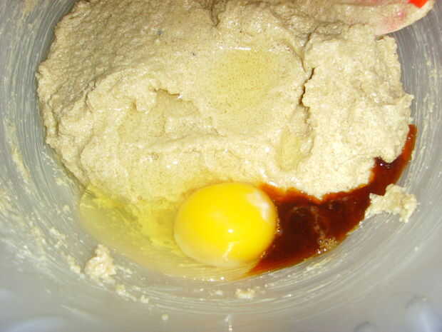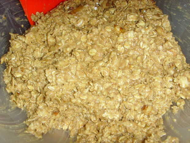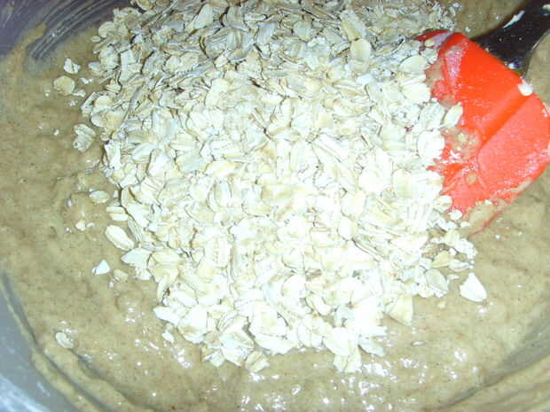 -Cuando todo está bien, comenzar a añadir la avena por taza. Luego agregar las nueces picadas.