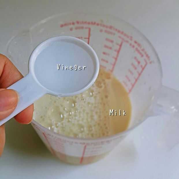 2. Si te quedas sin suero de la leche, mezcla 1 taza de leche con 1 cucharada de jugo de limón o vinagre alcanza el mismo resultado.