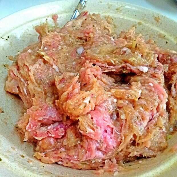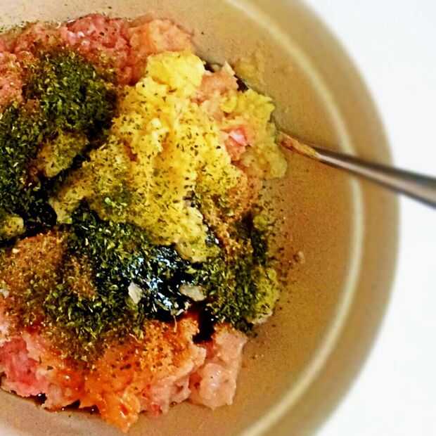 a. en un tazón grande, combinar la carne y condimentos (B de ingredientes).