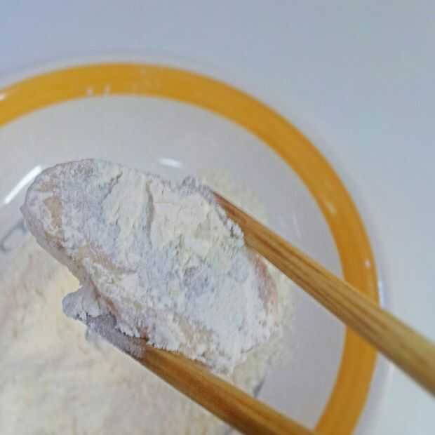 b. Coloque la harina en un recipiente poco profundo y sazonar con sal y pimienta blanca.