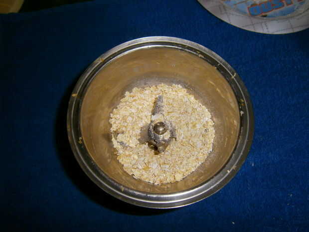 Tomar algunos avena y polvo a una textura gruesa. No debe ser demasiado fina como harina de avena.