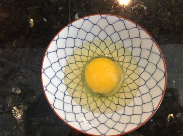 2. romper un huevo en un bol y batir con un tenedor/palillos/lo que sea.