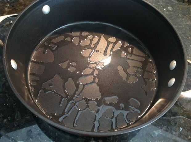 1. Vierta el aceite en una sartén. No importa qué tipo de aceite o qué tipo de pan, lo que usted tiene. Usé aceite de oliva para esta demostración. También, el aceite más usas, más tierna y sabrosa generalmente los nuggets. Calentar la bandeja de en medio hasta que el aceite esté caliente.