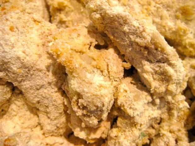Puede agregar más harina Si ves manchas desnudos o mojados en la carne falsa.
