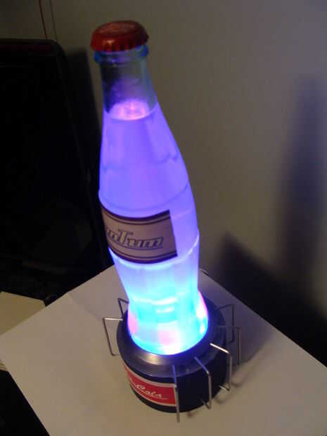 Yo quería hacer mi propia cuántica pero no quiero que simplemente estaba sentado en una luz. Quería hacer una base con propósito, uno que parecía que era parte de la pieza. Se me ocurrió este pequeño diseño del reactor. Diseñado para que se vea como el reactor es voladura el Quantum con radiación activando el estroncio en el líquido. También probé a diseñarlo para que parezca vino del universo Fallout.
