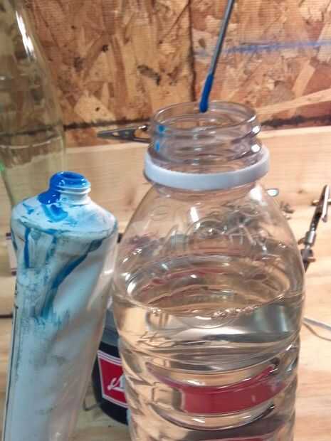 Puso la botella en el soporte y luz para arriba. Si estás contento con el color, puede pegar la tapa en. Hago esto para sellar y así que no se trata de beberla! Poner una capa delgada de pegamento en la parte superior de la botella y pop arriba en. Mantener en su lugar para un poco hasta que el pegamento empiece a establecer.