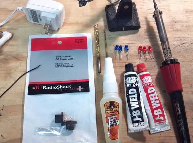 -tres LED 5mm azul (estoy usando rojo y azul LED de luces de Navidad, pero los cables de ellos son baratos y tienden a romperse fácilmente. Le recomiendo comprar los mejor de Radio Shack).