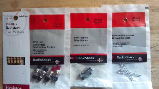-una resistencia de 150 ohmios (para los LEDs UV) (#271-1109)